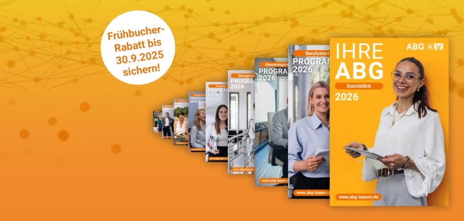 Unsere neue Broschüre gibt Ihnen einen kompakten Überblick über das Leistungsangebot der ABG – von der individuellen Weiterbildung über digitale Lernformate bis hin zu durchgängigen Karrierewegen in den Fachbereichen. Dank direkter Verlinkung zur Website erhalten Sie dort alle weiterführenden Informationen zu Seminaren und Angeboten: https://www.abg-bayern.de/abg/aktuelles/bildungsprogramm